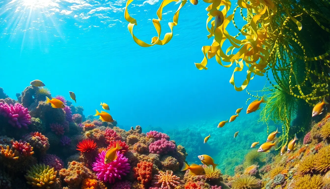 Coral reefs serve as a habitat for diverse marine life. Various fish species, like parrotfish and cleaner wrasses, maintain the health of these reefs. Nudibranchs, with their colorful bodies, feed on algae and sponges, which contributes to reef balance. Kelp forests provide shelter for creatures like sea otters and various fish. They also influence currents and nutrient flow within the ecosystem, promoting rich biodiversity. Nutrient cycling occurs as plants photosynthesize, supporting herbivores and predators alike. These interactions create a delicate web, ensuring survival for many species.